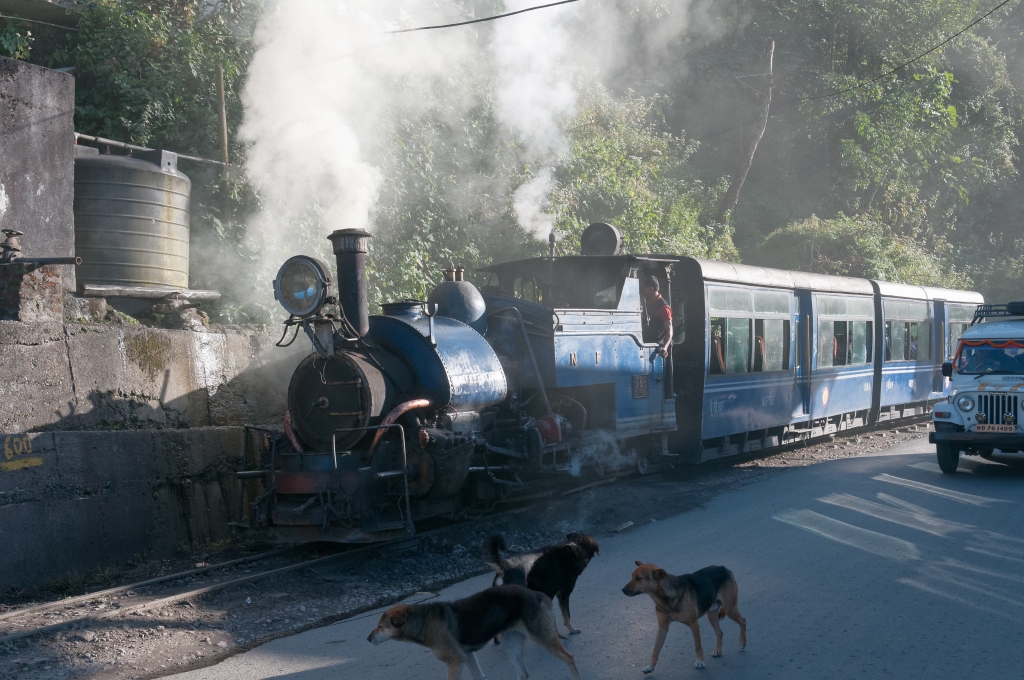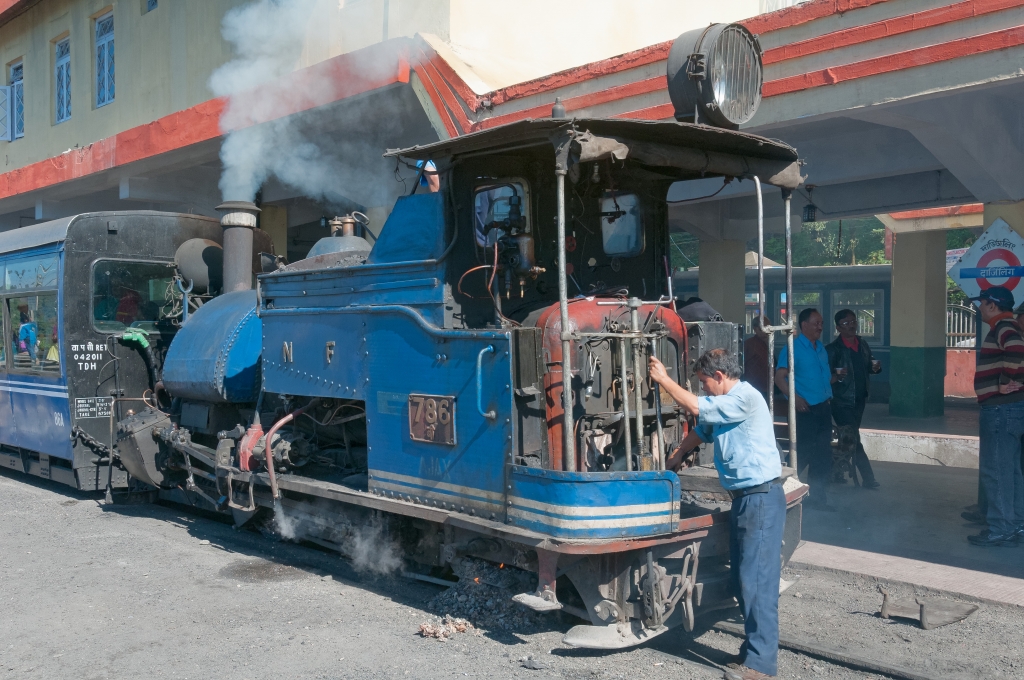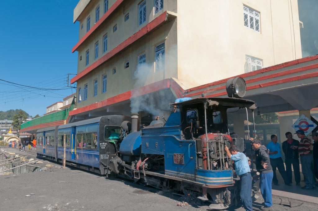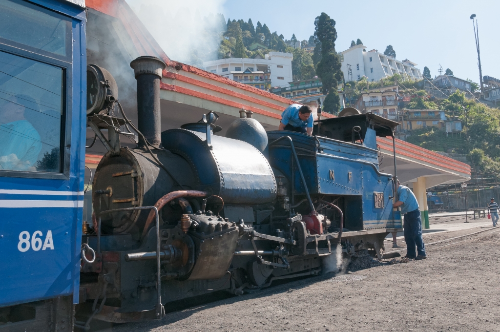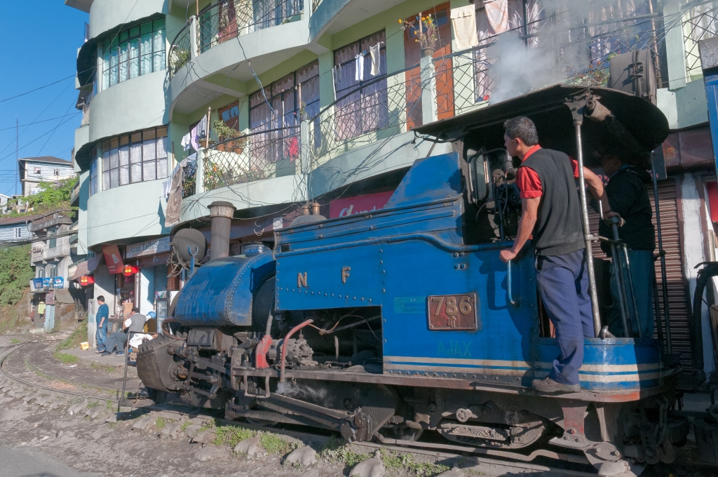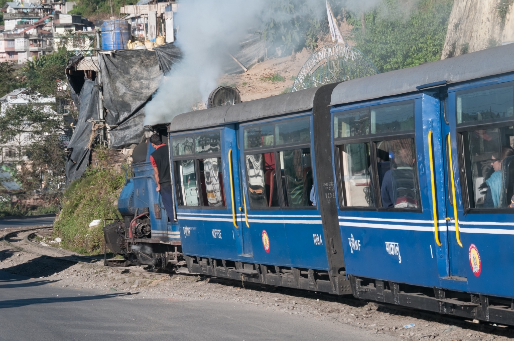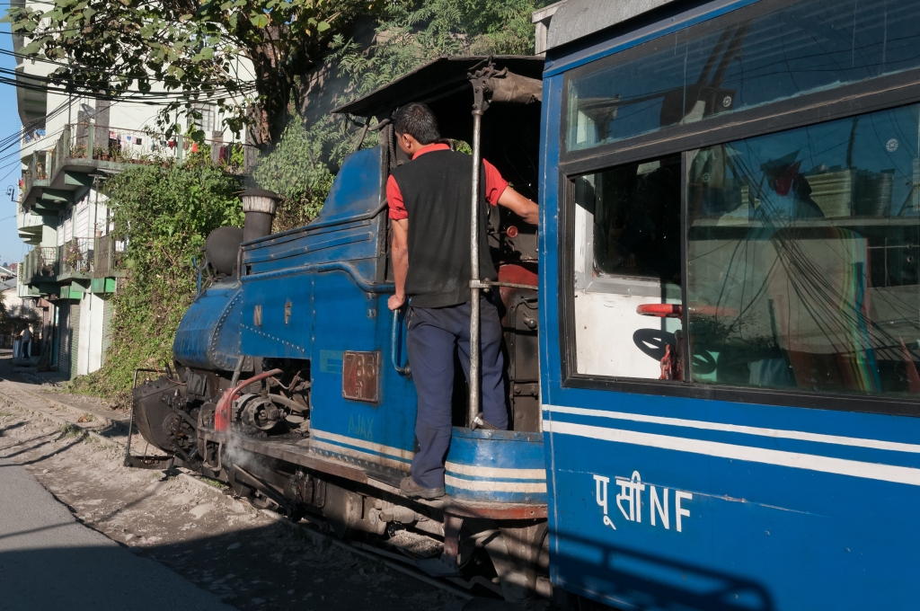 In die Darjeeling Himalayan Railway – liebevoll Toy Train genannt – habe ich mich schon 1985 bei meinem ersten Besuch verliebt. Die kleine – 62cm Spurweite, two foot – Bahn schlängelt sich seit 1880 aus der heissen Ebene Bengalens auf den luftige Bergrücken, auf dem Darjeeling auf 2075m liegt. Die Besitzer der Teeplantagen wollten einen schnelleren und billigeren Weg um ihre wertvolle Fracht auf den Weltmarkt zu bringen, und die in der unsäglichen Hitze von Kalkutta lebenden Ausländer waren es leid sich auf Sänften, oder in holpernden Karossen über die Hill Cart Road an die Frische zu gelangen. Das Trasse der Adhäsionsbahn schlängelt sich der Strasse entlang, kreuzt sie unentwegt und verlässt sie zwischendurch, um mit Spitzkehren im Zick-zack oder flach gelegten Loopings die nötige Streckenlänge für den Höhengewinn zu erreichen. Da der Südabhang des Himalaya den sintflutartigen Güssen des Monsuns ausgesetzt ist, kommt es immer wieder zu schwerwiegenden Erdrutschen, die viele Menschenleben kosten und das Gleisbett in die Tiefe reissen. Sowohl 1985, als auch 2010 hatte ich das Pech, dass die Strecke unterbrochen war. Vielleicht versuche ich es bald wieder!