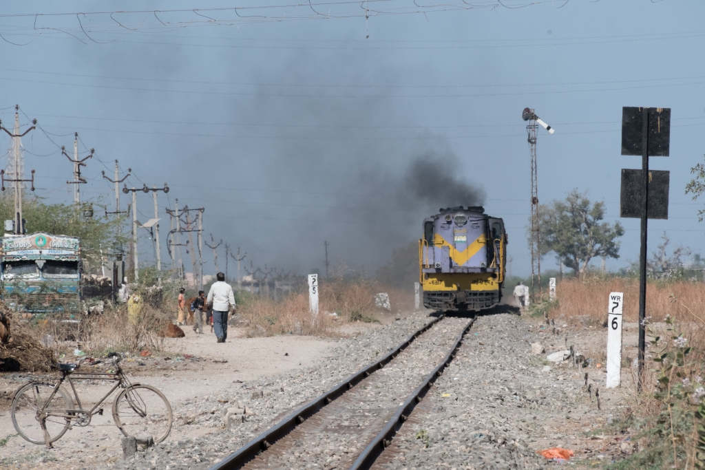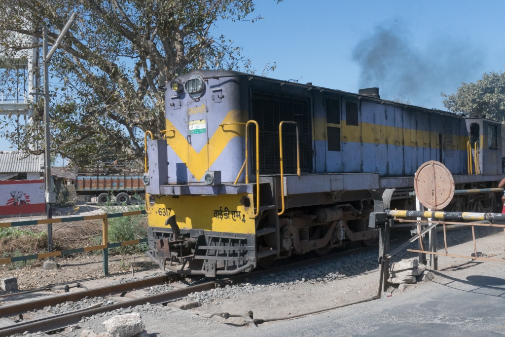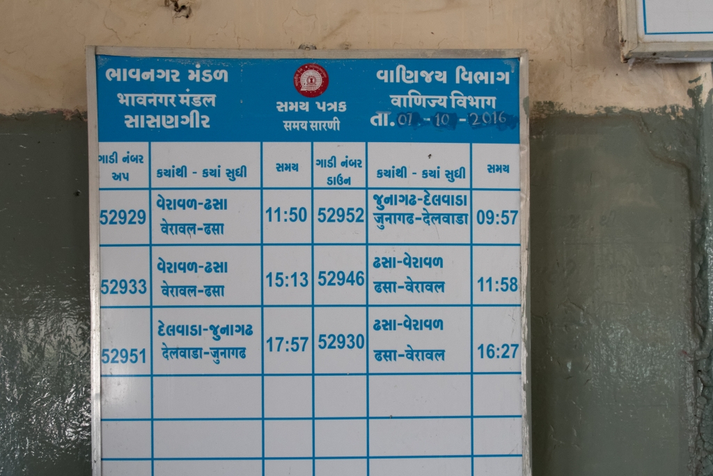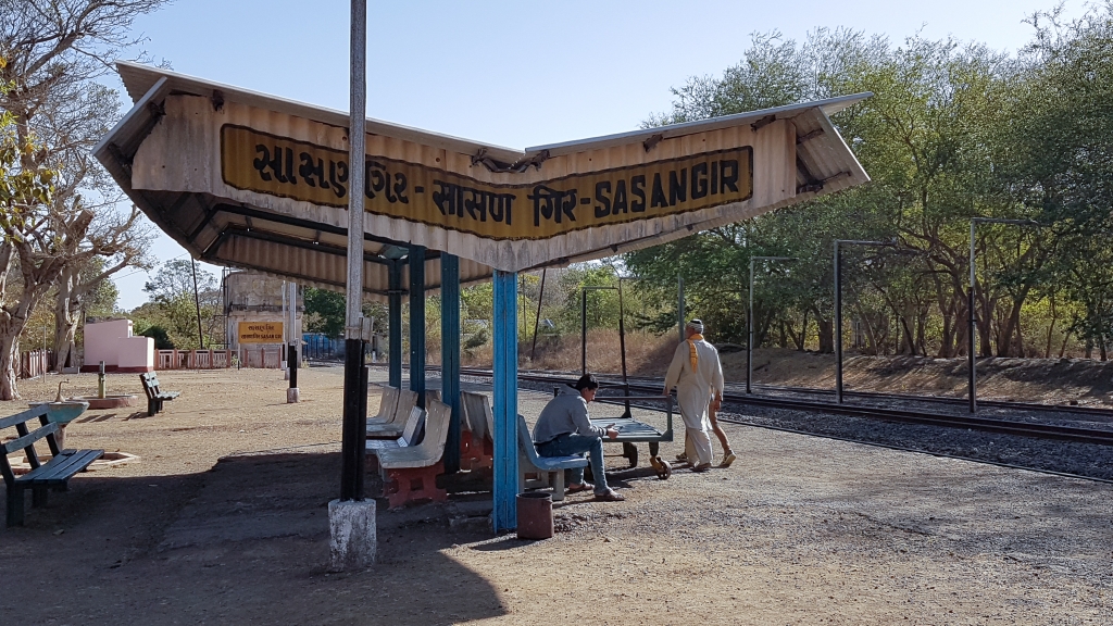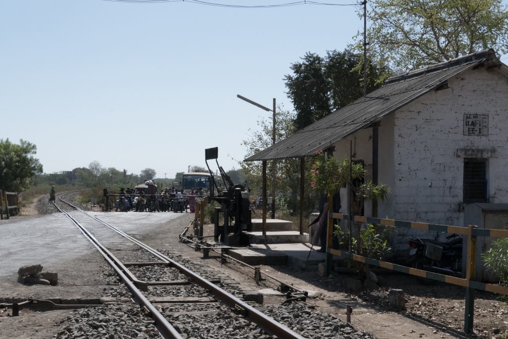 Noch rollen, rumpeln und schaukeln die Schmalspurzüge durch einige Gegenden von Indien. Die Umstellung auf Indische ’normal‘-Breitspur schreitet zügig voran, so dass ich gerne die Gelegenheit nutze noch einmal in einem Lokalzug eine Stunde lang hinter einer unablässig hupenden Diesellok durch Gujarat zu zuckeln. Wie immer fasziniert das vielseitige Leben auf den Plattformen der Stationen, in den gut gefüllten Wagen und neben der Strecke. Die ‚eisenbahnerischen‘ Aspekte wie Steckensicherung, open-air Stellwerk, Fahrplantafeln, etc. studiere ich ausgiebig und halte sie im Bild fest. Die kurze Fahrt bringt uns von Sasan Gir bis nach Talala Junction.