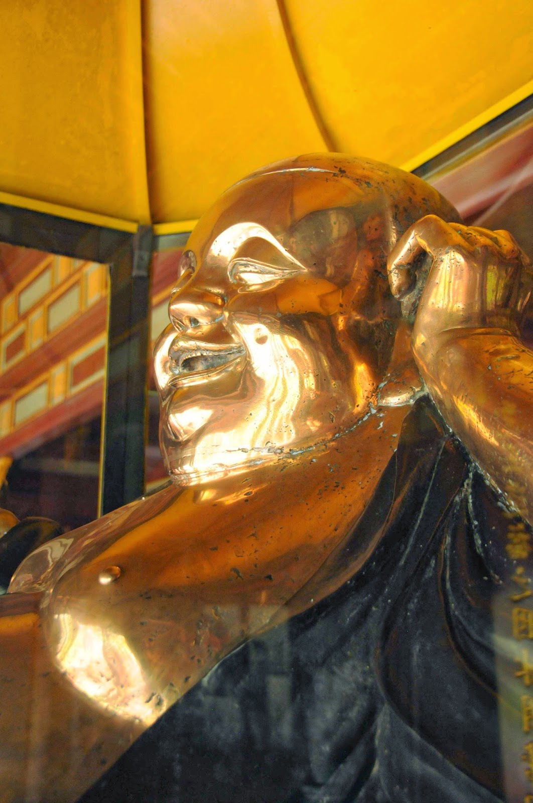 The entrance is well guarded by a severe warrior and a friendly turtle.