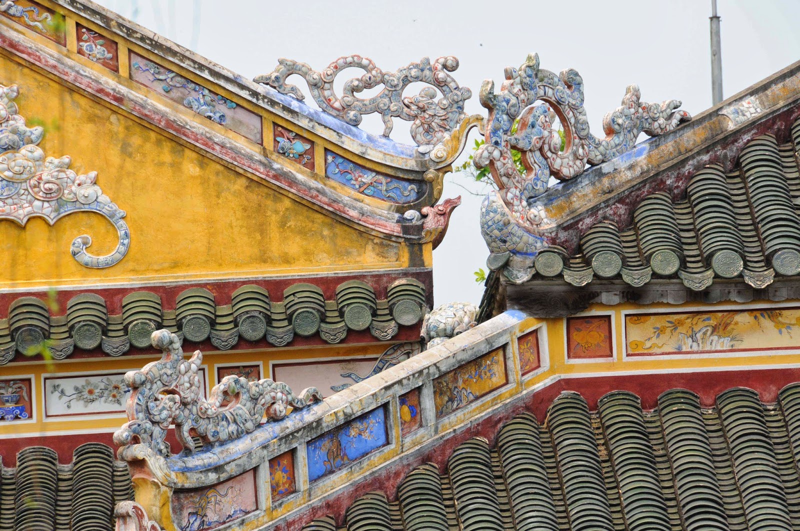 650 Km südlich sind wir in der alten Kaiserstadt von Vietnam. Die wichtigste Sehenswürdigkeit ist die Zitatelle mit ihrer verbotenen Stadt – das ist der Bezirk des Kaiserpalasts. Die Region wurde im US-Vietnamkrieg teilweise in heftige Kämpfe verwickelt. Die Zitatelle selbst war 3 1/2 Wochen unter der Kontrolle der Vietcong. In der Folge wurde ein erheblicher Teil des Palastviertels schwer beschädigt. Heute ist es ein UNESCO Weltkulturerbe und seit 10 Jahre wird – soweit Geld vorhanden ist – ein Wiederaufbauprogramm umgesetzt.Hue lies 650 Km south of Hanoi. The main sight here is the zitadelle with the forbidden city – i.e. the imperial palace. During the US-Vietnamese war heavy fighting – the vietcong held the citatelle for 3 1/2 weeks – resulted in extensive damages to the palaces. Under the protection as a UNESCO world heritage a reconstruction programm is under way since 10 years. Money is scarce and the US do not participate in the funding – guess why!