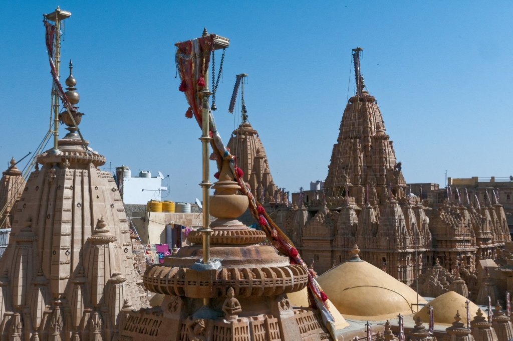 Da uns liebe Freunde begeistert von ihrem Besuch in Jaisalmer berichtet haben, wollten wir selbst sehen, was aus diesem Kleinod geworden ist. Wir wurden nicht endtäuscht. Da der seit drei Jahren fertig gestellte Flughafen immer noch keinen regelmässigen Verkehr aufweist, sind die grossen Touristenströme noch nicht über diese einzigartige befestigte Stadt auf dem Felsen hergefallen. Die vergangenen über 30 Jahre haben die Stadt wachsen lasse, sie ist aber immer noch verhältnismässig klein und provinziell-beschaulich. Mehrere Hotels auf internationalem Standard laden jetzt auch zum Verweilen ein, so dass wir zwei ganze Tage geblieben sind.