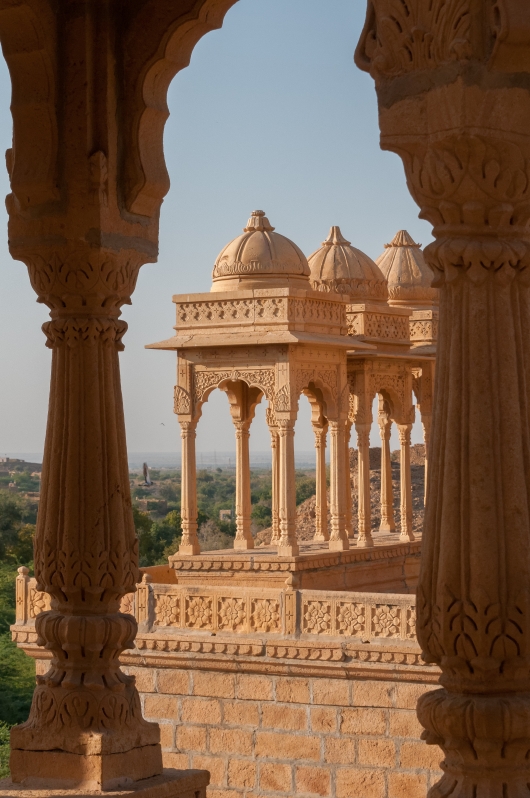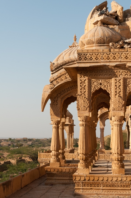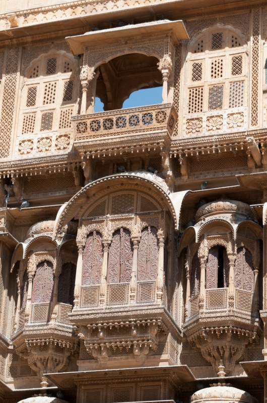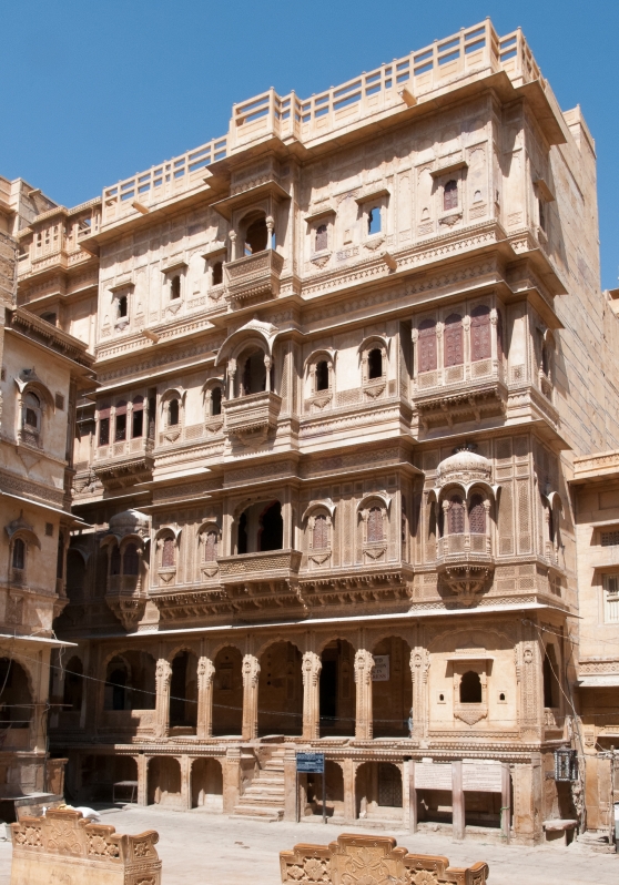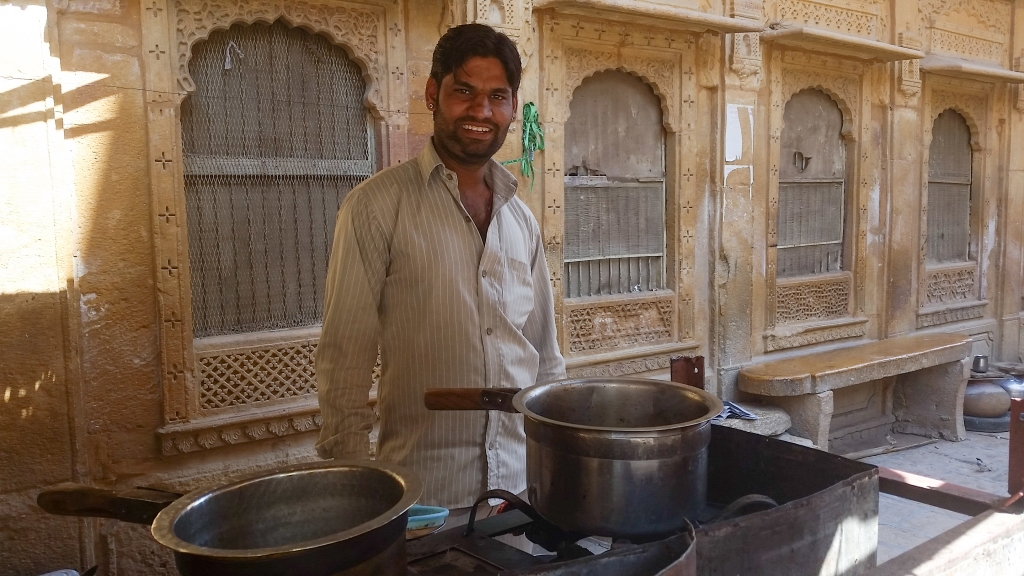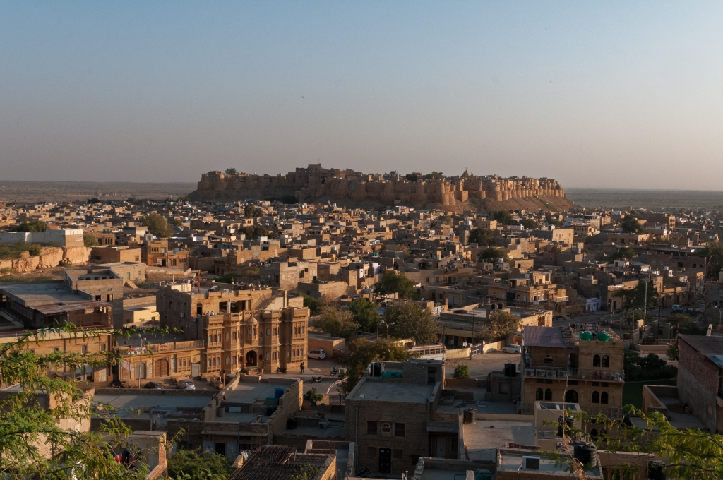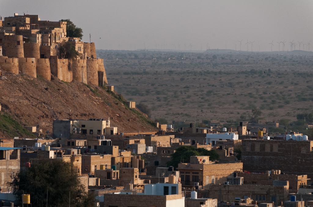 Da uns liebe Freunde begeistert von ihrem Besuch in Jaisalmer berichtet haben, wollten wir selbst sehen, was aus diesem Kleinod geworden ist. Wir wurden nicht endtäuscht. Da der seit drei Jahren fertig gestellte Flughafen immer noch keinen regelmässigen Verkehr aufweist, sind die grossen Touristenströme noch nicht über diese einzigartige befestigte Stadt auf dem Felsen hergefallen. Die vergangenen über 30 Jahre haben die Stadt wachsen lasse, sie ist aber immer noch verhältnismässig klein und provinziell-beschaulich. Mehrere Hotels auf internationalem Standard laden jetzt auch zum Verweilen ein, so dass wir zwei ganze Tage geblieben sind.