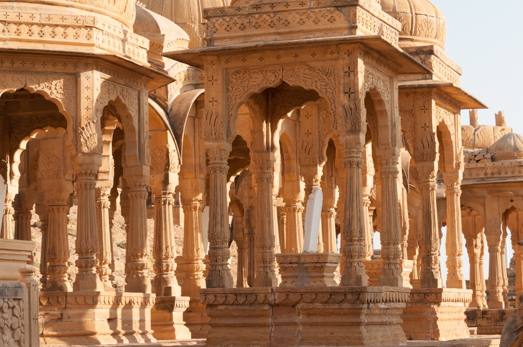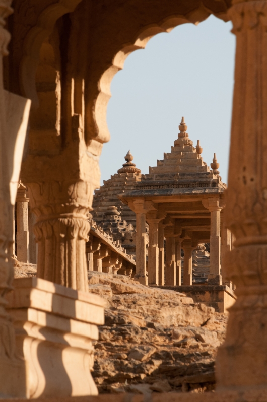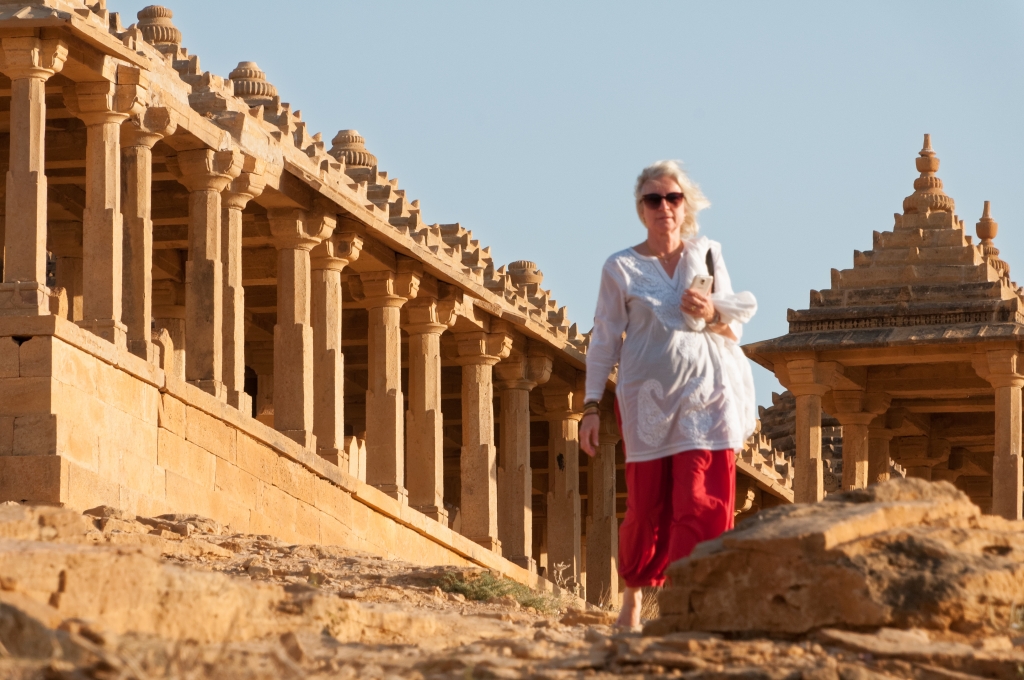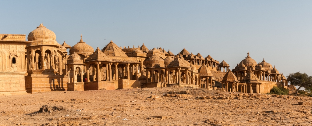 Auf unserer ersten Reise nach Indien – 1985 – haben wir die Wüstenstadt Jaisalmer kennen gelernt. Diese alte Karawanen- und Handelsstadt liegt an der alten Seidenstrasse am westlichen Rand von Rajasthan nahe der Grenze zu Pakistan. Der Nacht-Dampfzug von Jodhpur schüttelte uns in ca. 8 Stunden über die weiten Flächen der Wüste Tar und entliess uns bedeckt mit Kohlen-Sot in die frühmorgendliche Frische. Touristische Infrastruktur war praktisch noch nicht vorhanden. Nach einem sehr heissen Besichtigungs-Tag war wiederum der Nachtzug unsere Ruhestätte. Eine brauchbare Strassenverbindung zwischen Jaisalmer und Jodhpur existierte damals noch nicht.