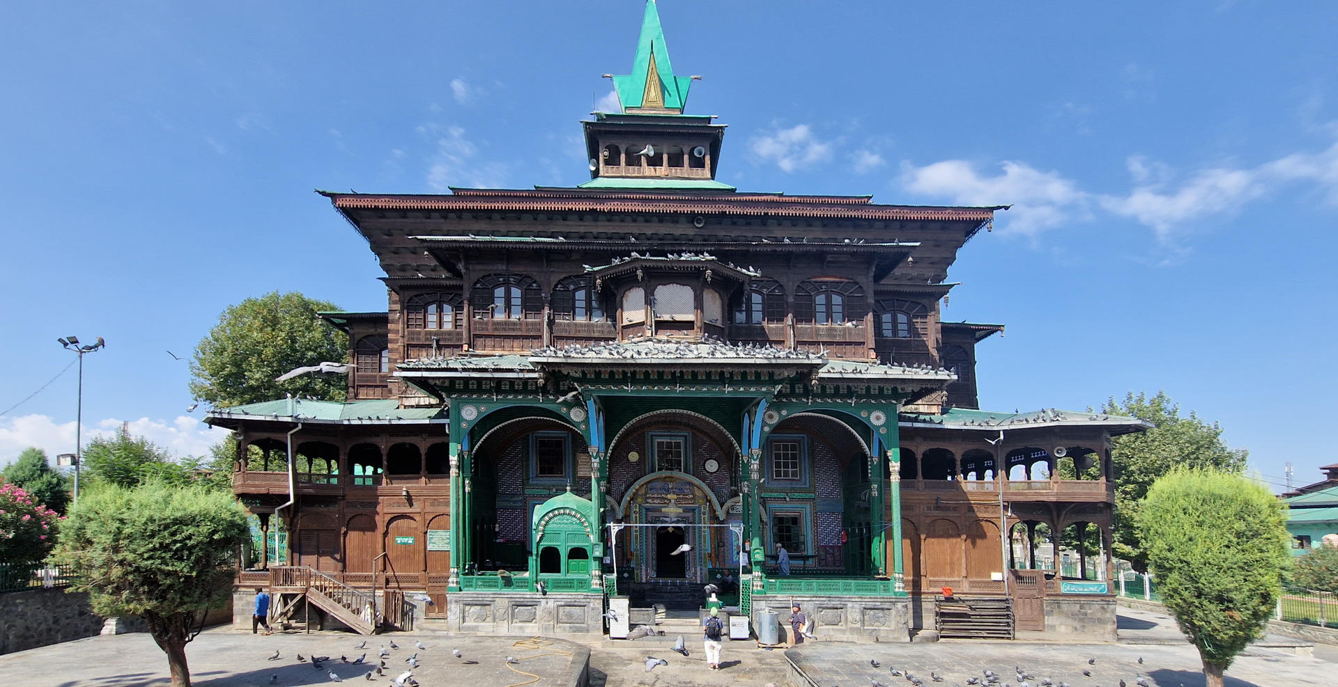 Shah-e-Hamdan Masjid is unique as it is buit in wood. First started in 1395 it burned down several times. The present structur dates from 1731 and is exqusitly decorated inside and out.