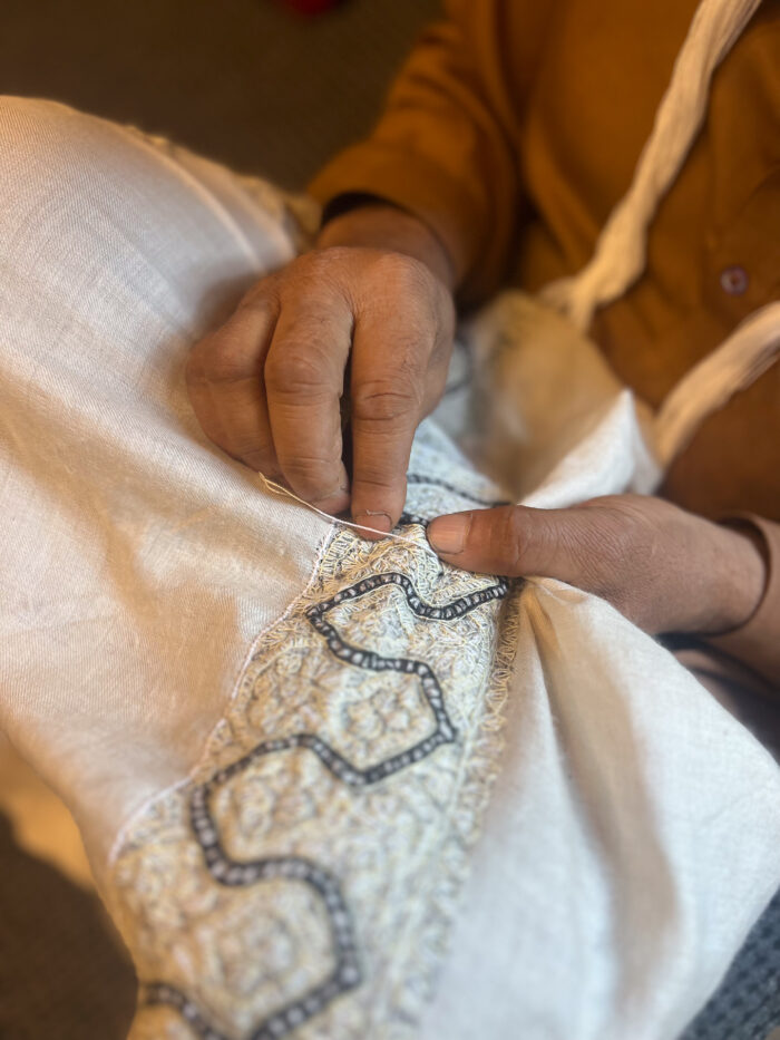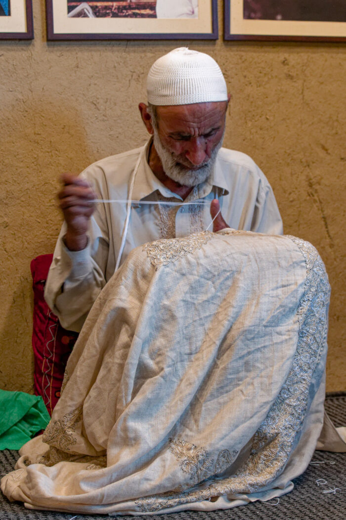 There are still many highly skilled workers hand producing fabulous carpets, shawls, pashminas, dresses, etc. using traditional techniques that have been handed down over generations. The work is done by men not women and unfortunately very fiew young ones are interested in carrying on the tradition.