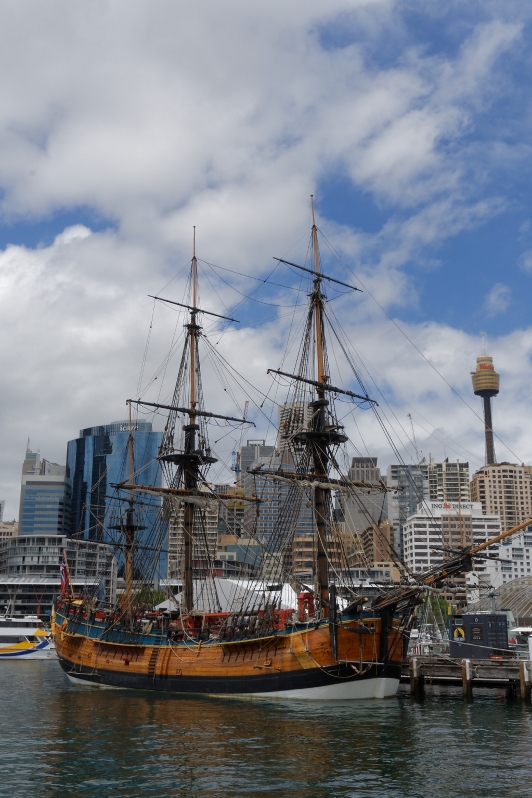 Stepping on board one of Captain Cook’s Harbor Story Cruises we get a feeling for the way people live – many in great luxury – along the unending shores of the innumerable inlets, fingers and bays that form Sydney harbor. We get another great peek at this maze from 300 meters up above the city at the Sydney Tower Eye. History unfolds at the Australian National Maritime Museum with exhibits about the Aborigines, the arrival of the first discoverers and transportees, the different waves of immigrants and many boats and ships. Most impressive and important is the seaworthy replica of Captain Cook’s ship HMB Endeavour. Last but not least we payed tribute to the (in-)famous Bondi beach and survived a sunday night in a room above one of the roudy watering holes along the promenade.