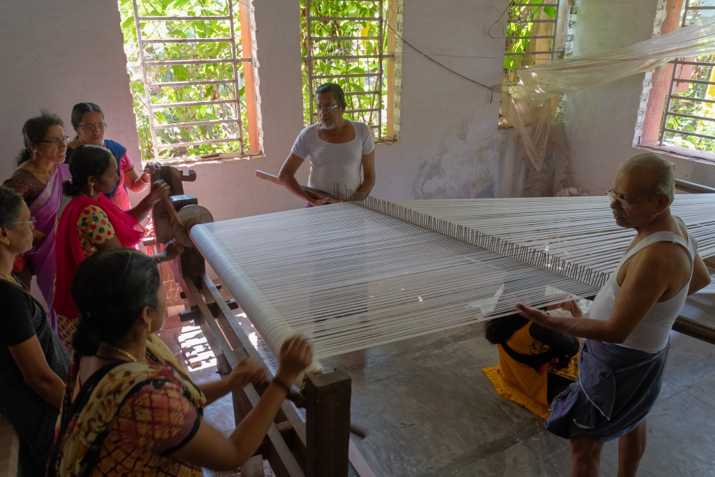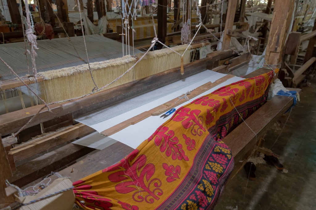 20181128_114328_NIKON D500a_DxONext, we visit two local handicraft cooperatives. At the Pinarayi Weavers Co-operative highly skilled and dedicated craftspeople keep up the art of traditional hand weaving. As you can see in the pictures, they still use the old and mostly wooden looms and other machines to produce beautiful and top quality textiles. The second shop was making the traditional bidi cigarettes.