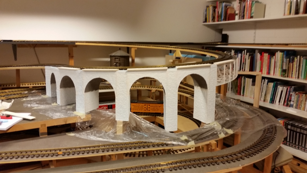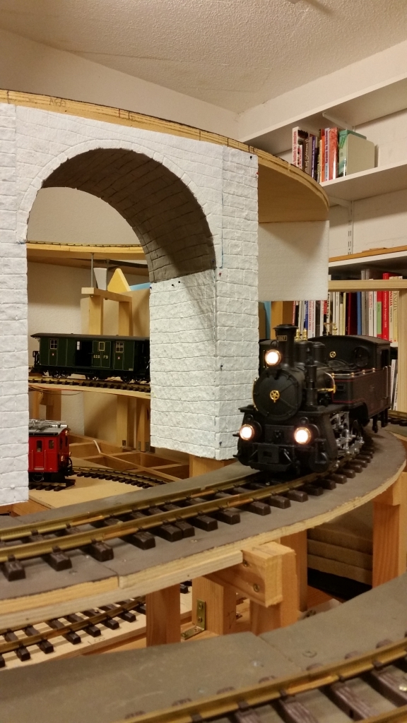 - Die Bogen bestehen aus Polystyrol Isolationsplatten aus dem Baumarkt. Je Bogen ist ein Element aus 8 cm und das Zweite aus 10 cm geschnitten. Zum Schneide verwendete ich beidseitig fixierte Schablonen aus 5mm Sperrholz. Geschnitten wurde mit dem Proxon Drahtschneider.
